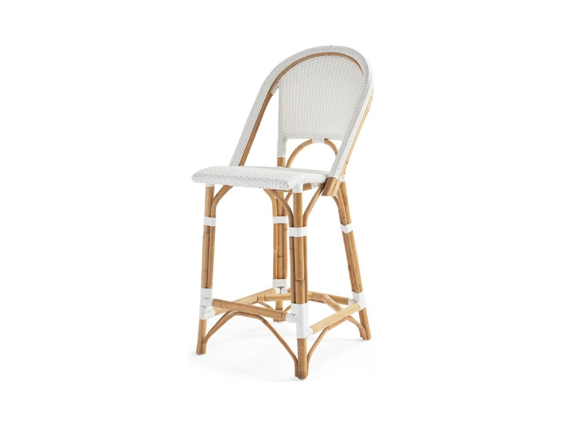 Bar stool with 66cm high seat, Manau frame, white woven seat and backrest