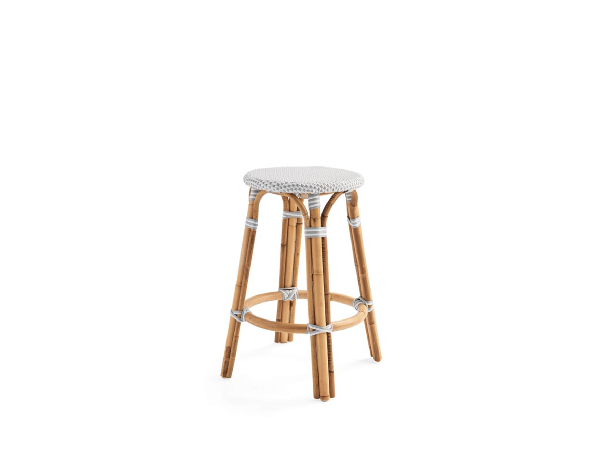 Backless bar stool with 66cm high seat, Manau frame, White-Grey woven seat