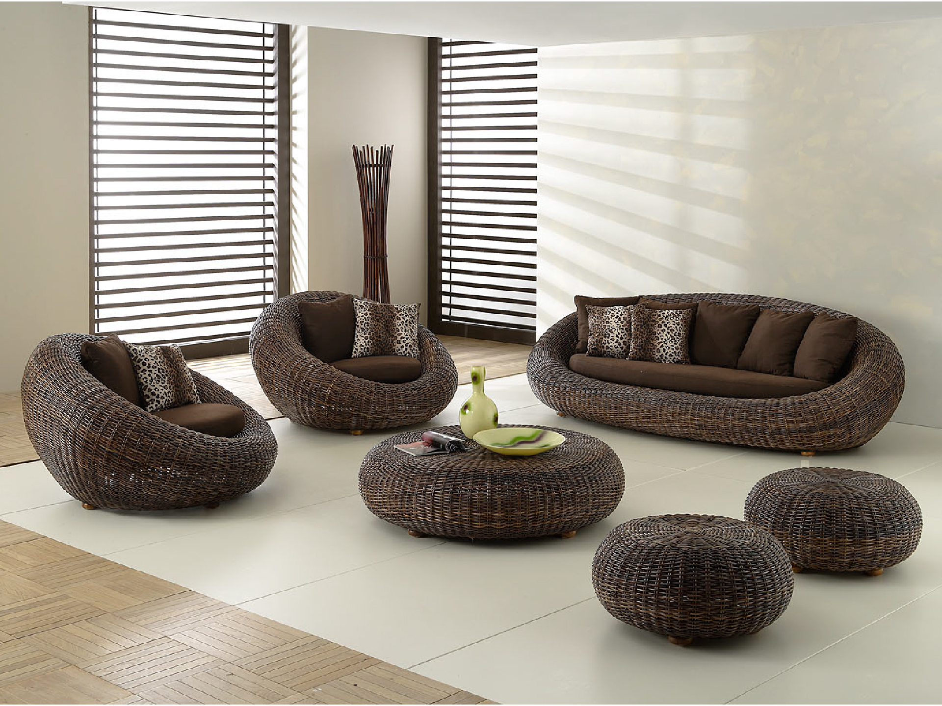 Set con struttura in Canna Naturale, seduta, braccioli e schienale in intreccio di coccodrillo grigio