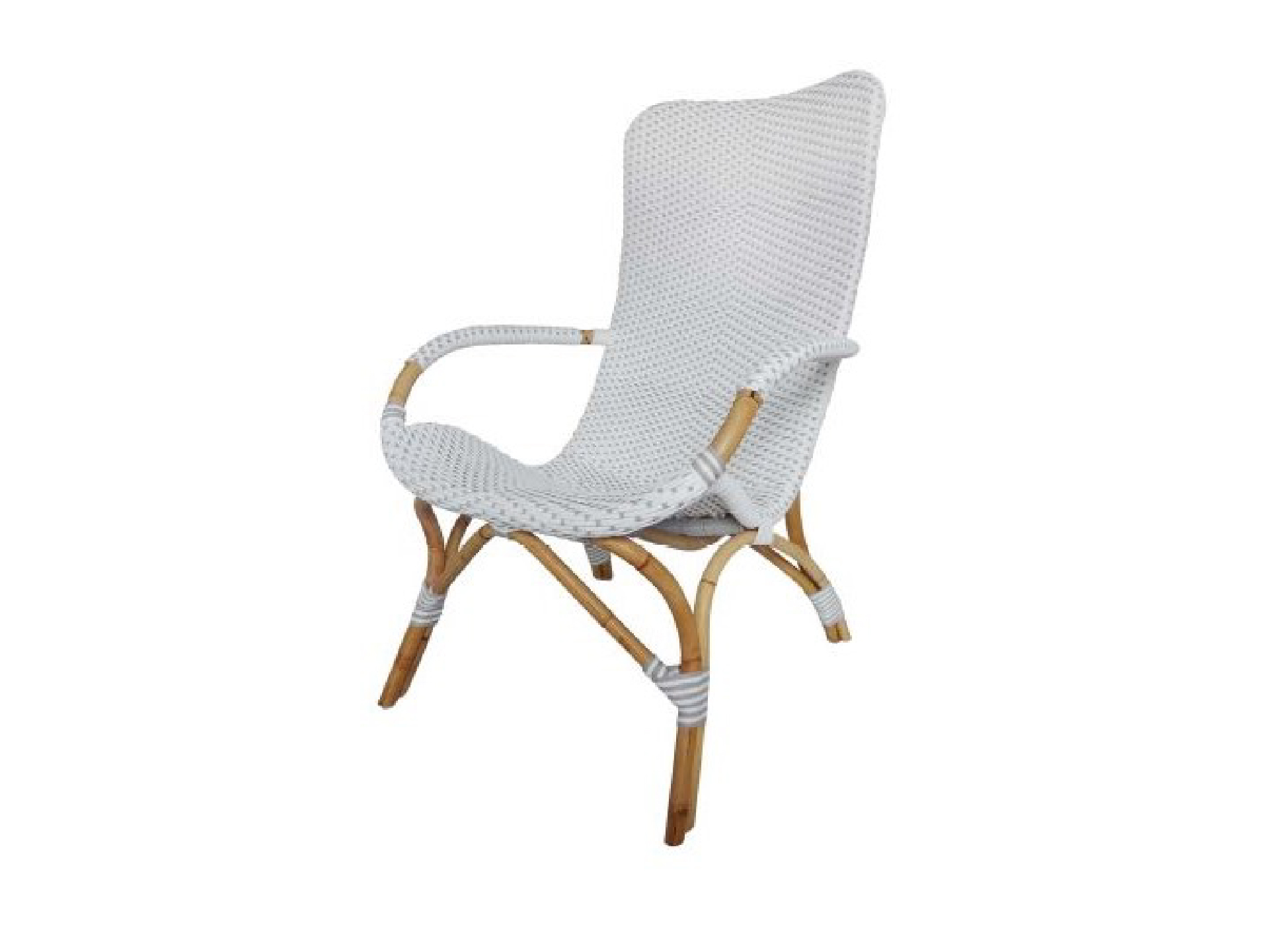 Poltrona con struttura in canna naturale; seduta, braccioli e schienale intrecciato color White-Grey